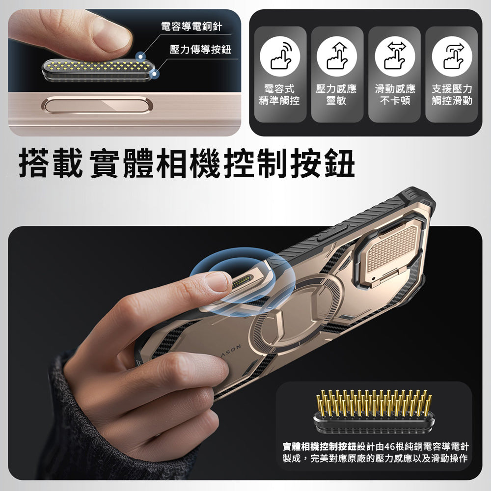 - 相機控制按鍵金屬接點設計,快速啟動、操作相機更方便
