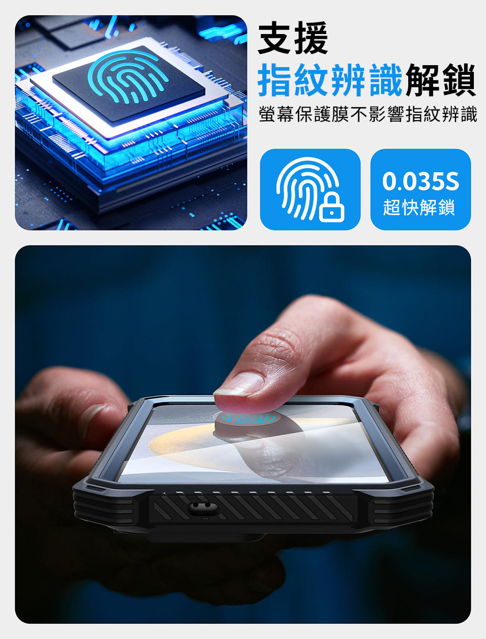 【支持指紋辨識】內置螢幕保護膜可防止螢幕劃傷和裂縫,且不影響觸摸靈敏度。