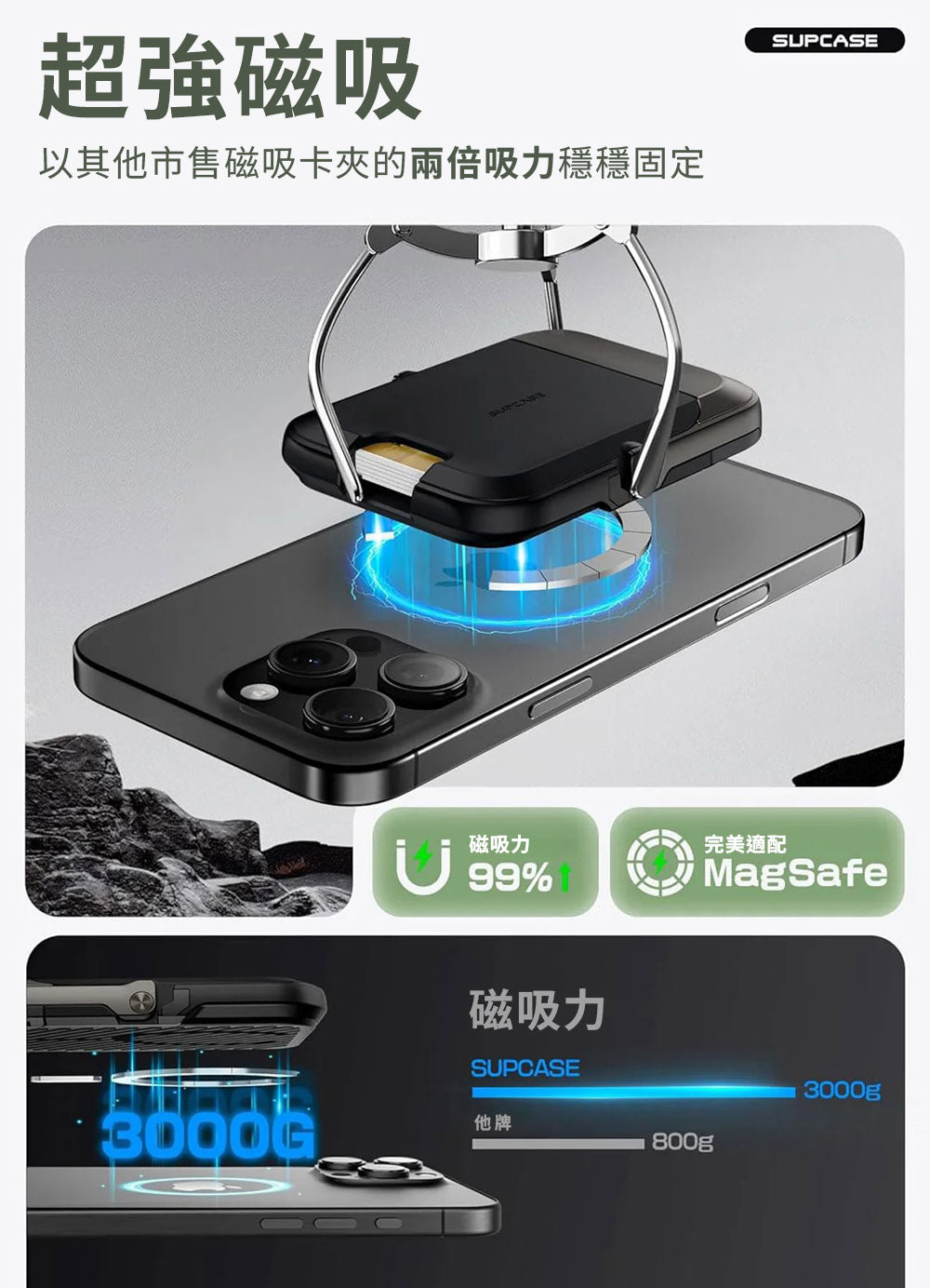 ・更強的磁鐵,可以更安全地吸附在手機上