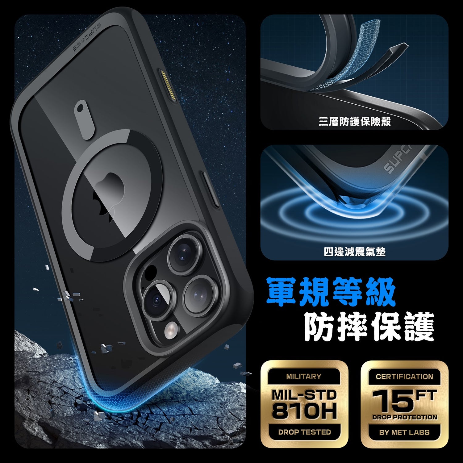- 達到美國軍規等級,360°全機防護,四角氣囊技術抗震