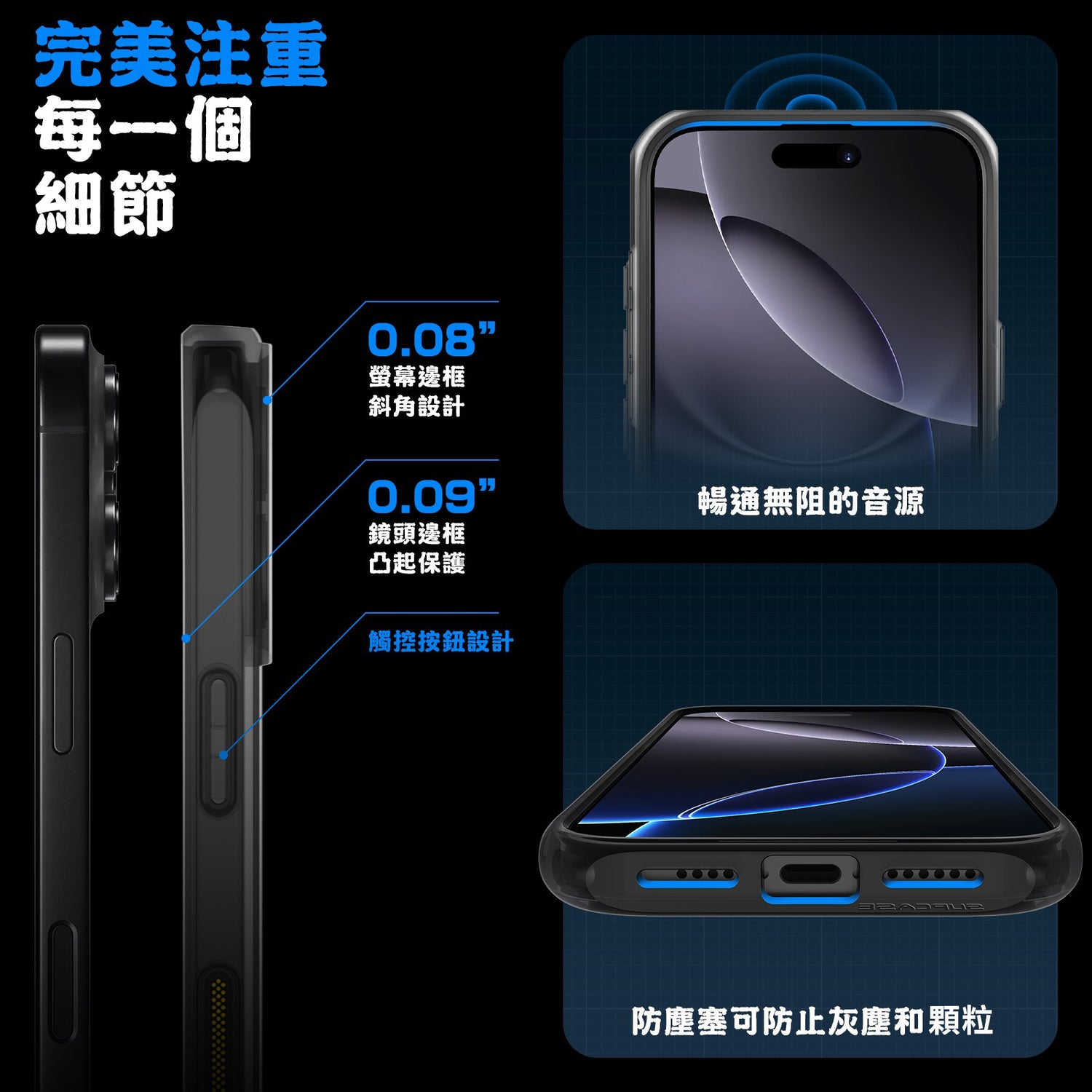 外觀時尚並富有科技感,開孔精準,易裝易取,握持感受舒適