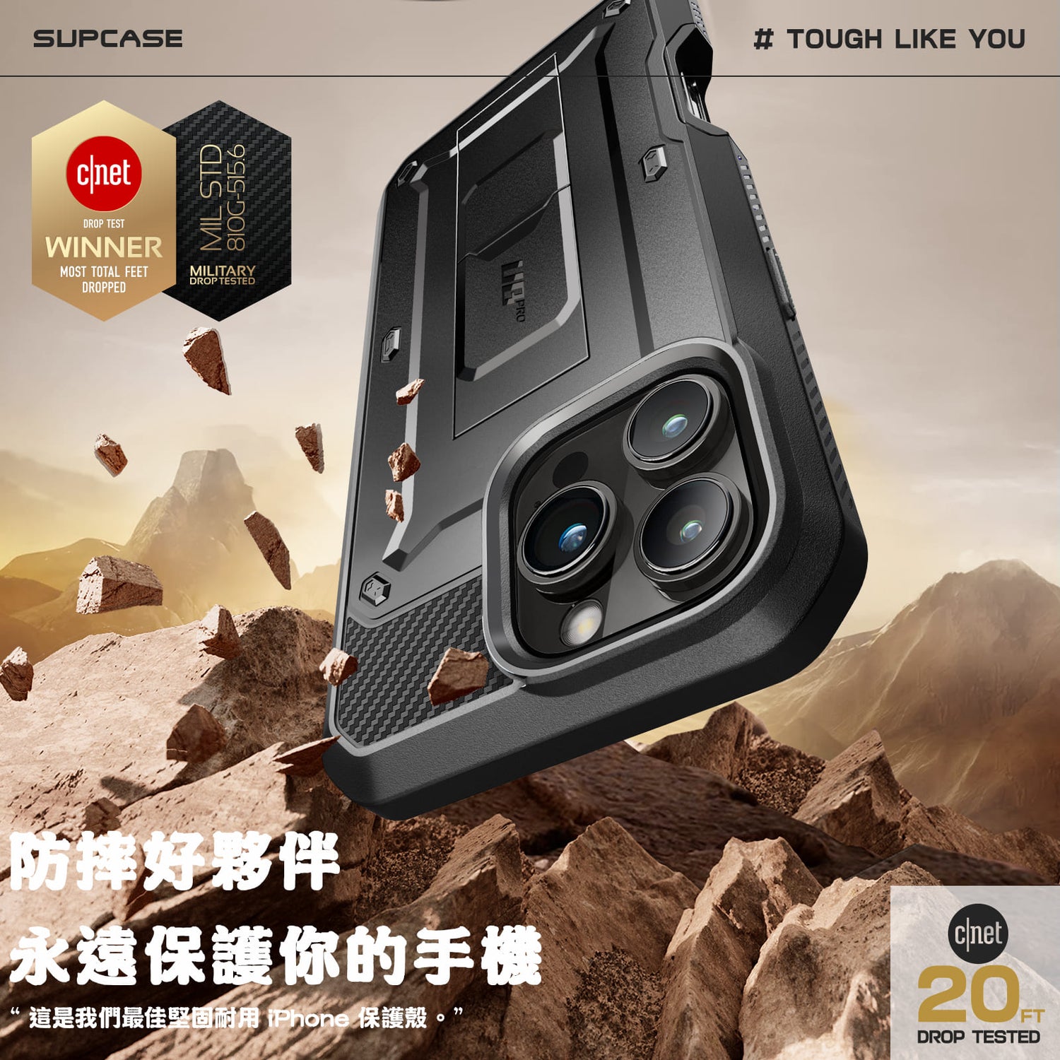 - 20 英尺跌落測試 : CNET「最佳案例」跌落測試得主。
