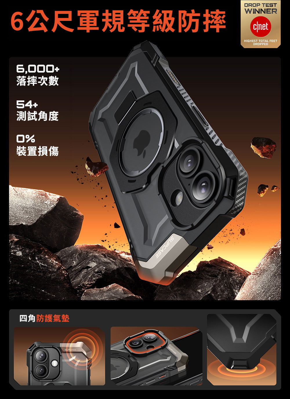 - 達到美國軍規等級,360°全機防護,四角氣囊技術抗震