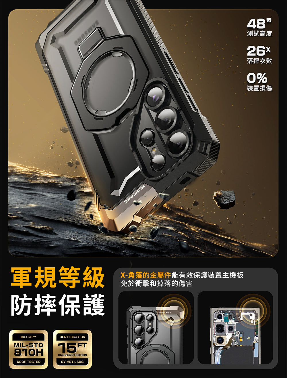 - 極致軍規防護,無懼跌落:四角氣囊技術,吸收衝擊,通過美國軍規防摔測試,360°全機保護。