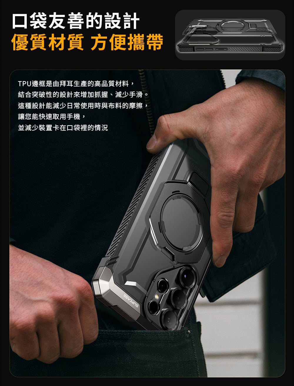 軍規防摔、磁吸支架、透明背板、口袋友善設計,全面升級