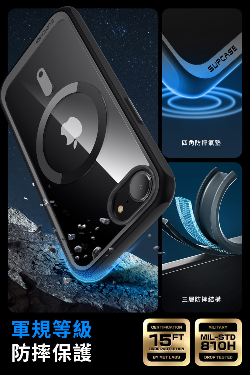 - 達到美國軍規等級,360°全機防護,四角氣囊技術抗震