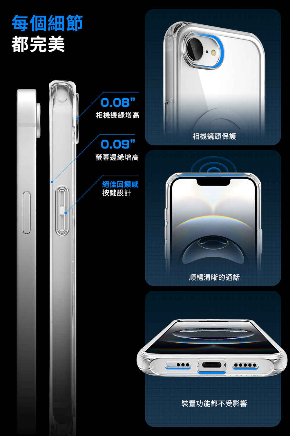 - 透明色系,不遮蓋手機本身色系質感