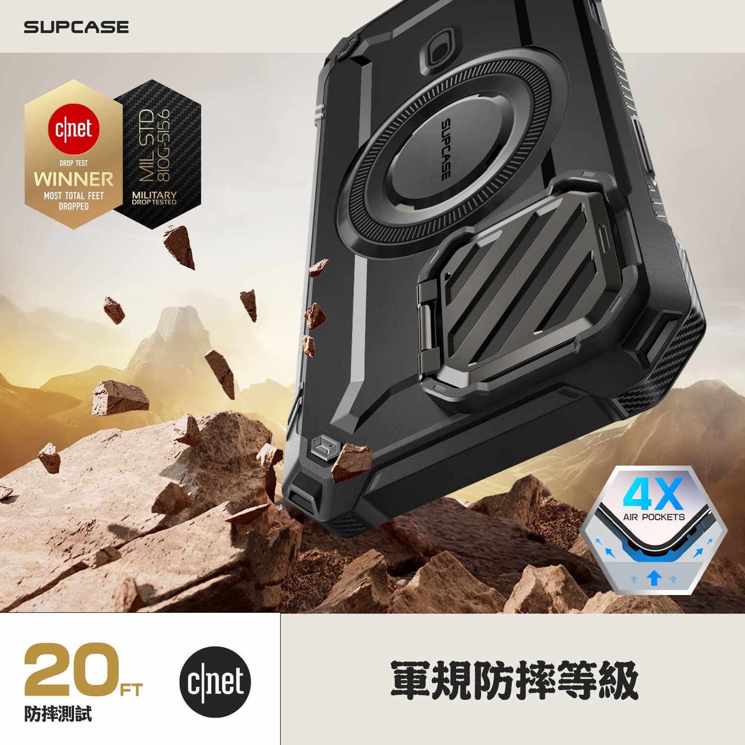 - 達到美國軍規等級,360°全機防護,四角氣囊技術抗震